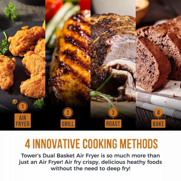 Vortx L Dual Basket Air Fryer Black | Air Fryers/Kitchen Tower Housewares Dual Basket Air Fryers