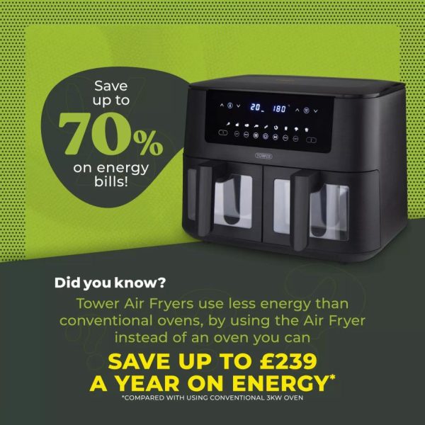 Vortx Litre Dual Layer Air Fryer Black | Air Fryers/Kitchen Tower Housewares Dual Basket Air Fryers