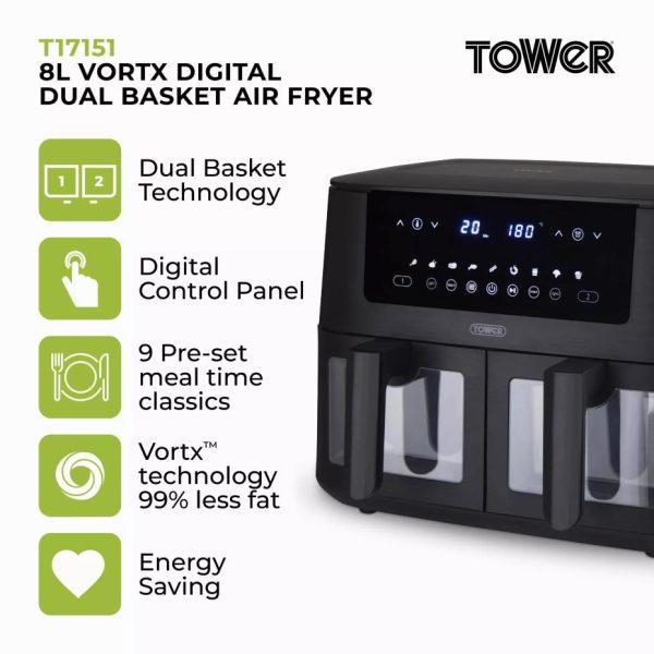 Vortx Vizion L Dual Basket Air Fryer Black | Kitchen/Air Fryers Tower Housewares Air Fryers