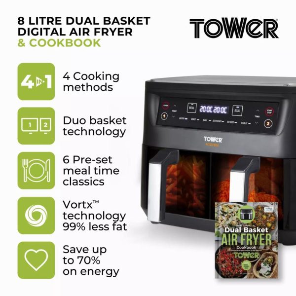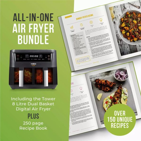 Vortx Vizion Litre Dual Basket Air Fryer & Recipe Book None | Kitchen Tower Housewares Bundles